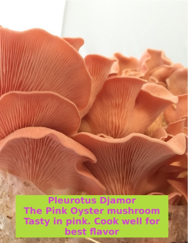The Pink Oyster mushroom is a very unique specimen. Start with its color: from pale pink to deep salmon or coral. Its flavor profile is different from other members of the Pleurotus family kind of hammy or even bacoy! Its unique odor (fishy) warrants our nickname – The Stinky Pinky. Just slick up the whole thing and saute it in a pan of butter. When it gets crispy, sprinkle with salt. It tastes like bacon to most folks. Using smoked salt really pops the bacon flavor. NOTE: the Pink Oyster mushroom will last only 3 to 4 days in your refrigerator. It will stink up your fridge if you leave it in there for too long. A word to the wise. π